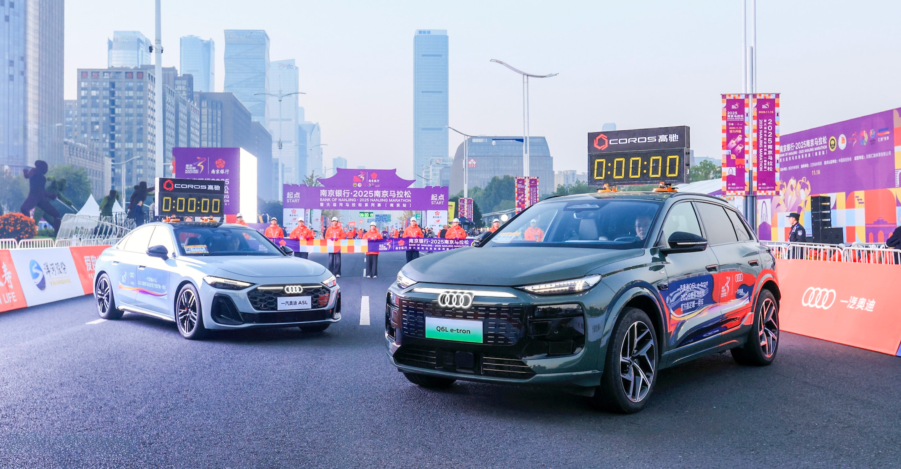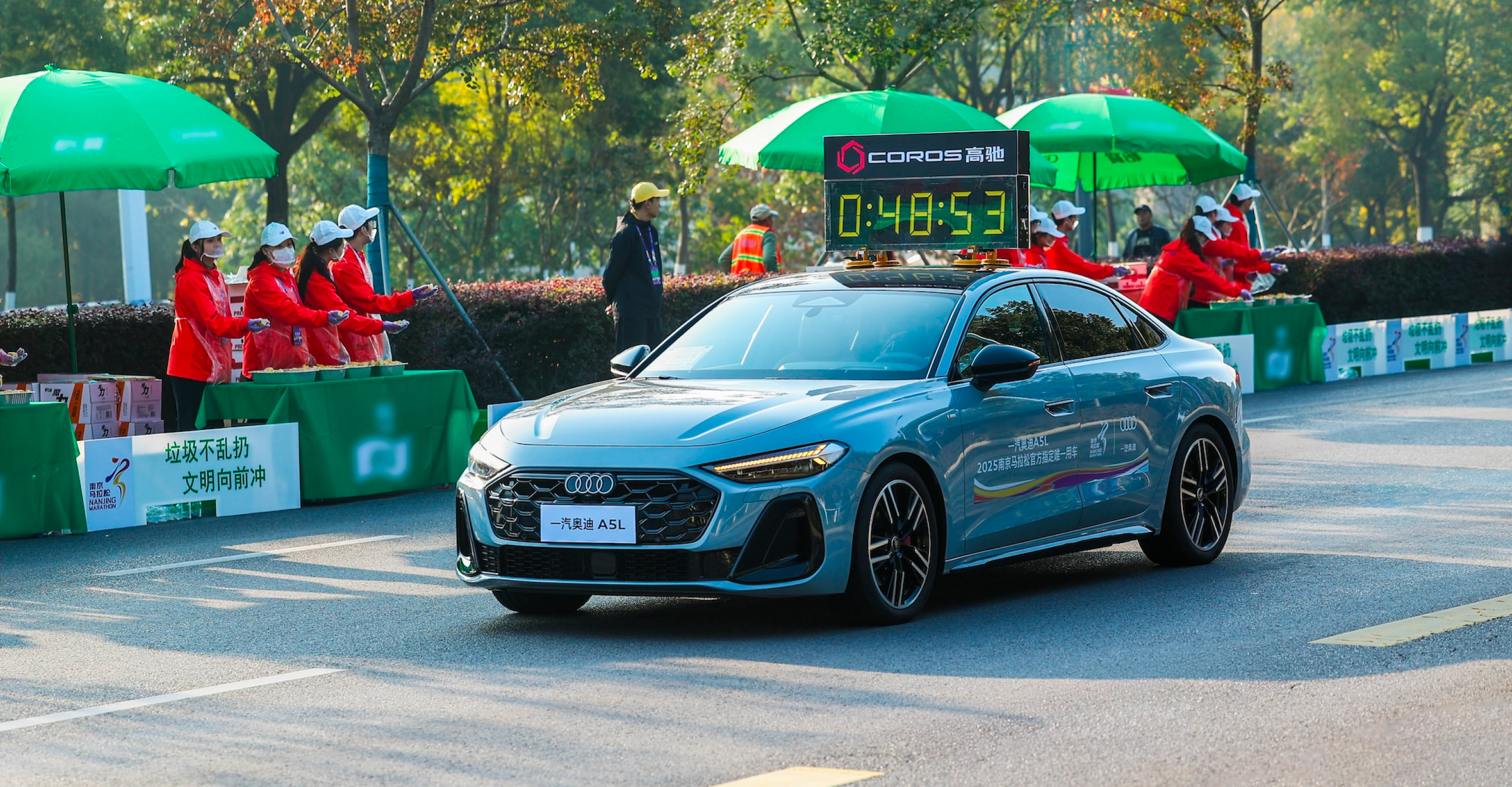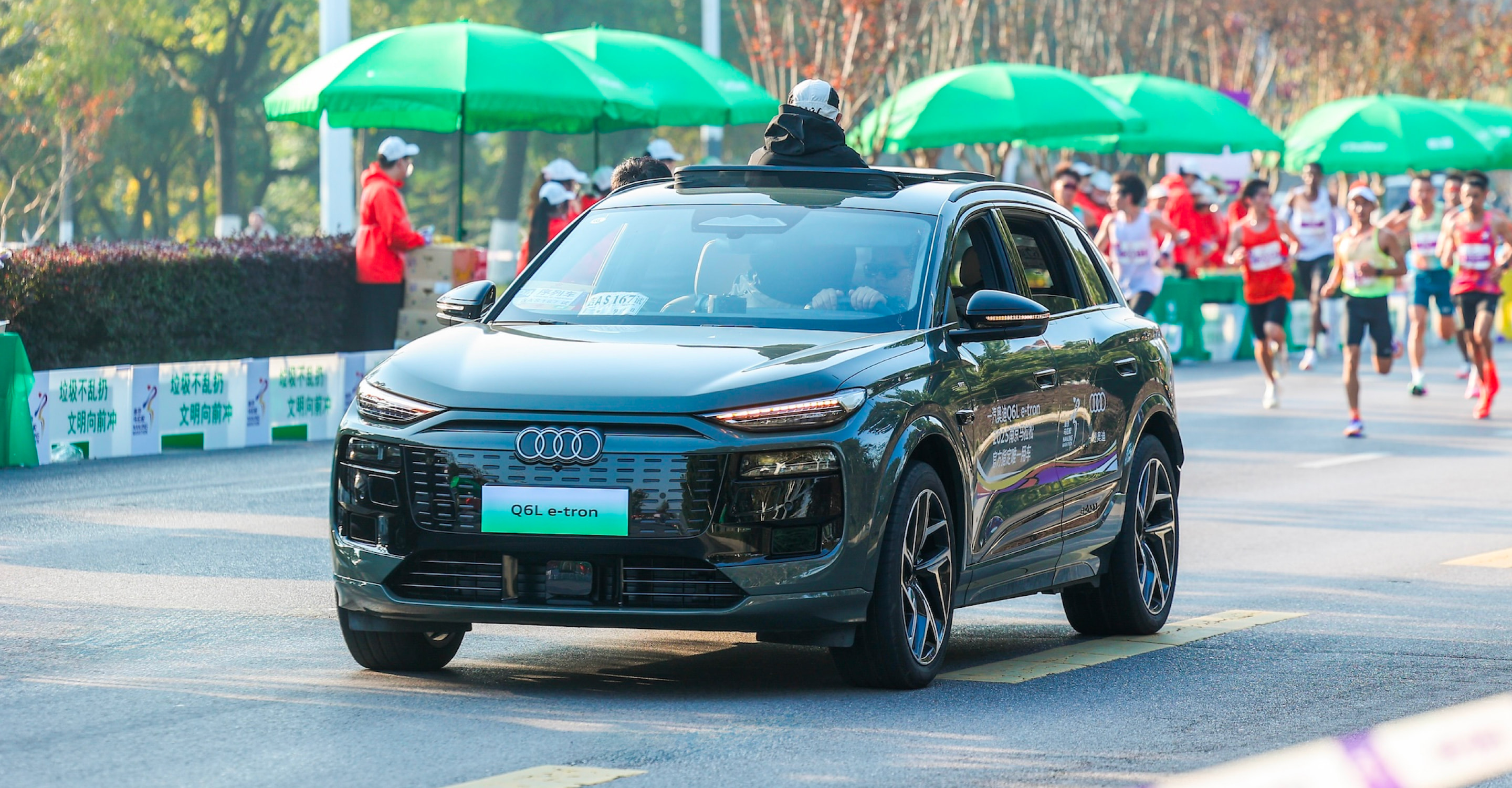 作为赛事官方唯一指定用车品牌,一汽奥迪领跑2025南京马拉松